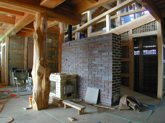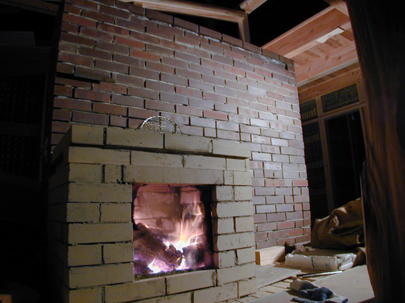 いろいろ教わりながら施主のKさん自らつくったペチカ.